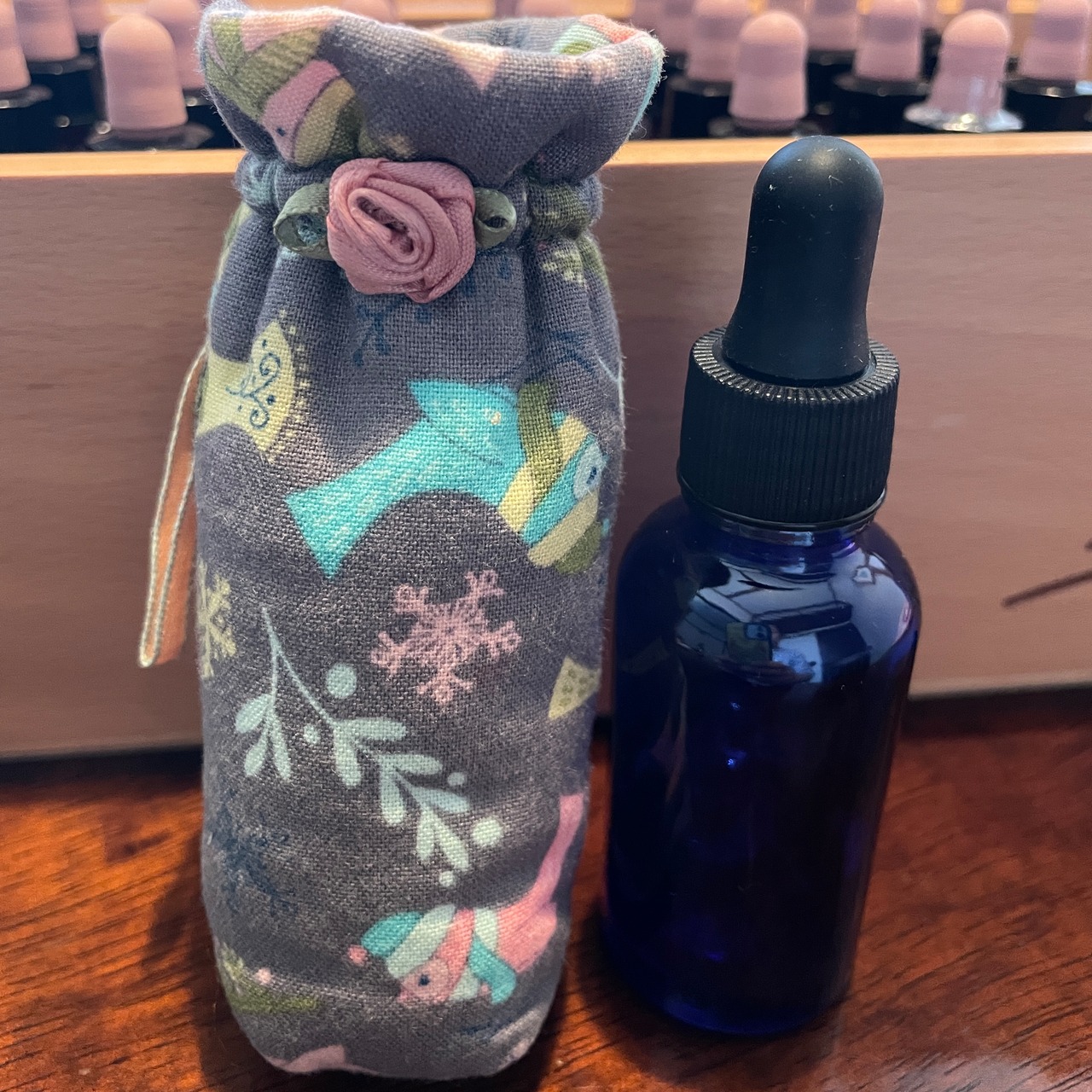 フラワーエッセンス、フラワーレメディー、レスキューレメディ、エッセンシャルオイル(精油)などの小さなガラスボトルのための布ケースです。